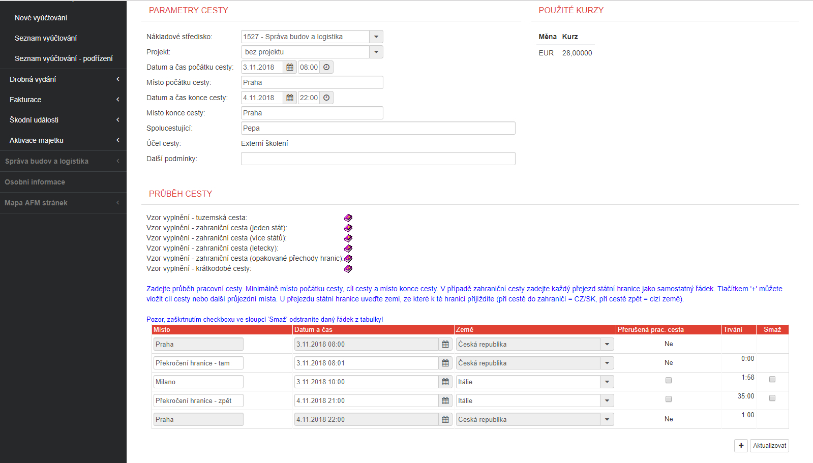 Aplikace byla implementována v roce 2011 a po celou dobu je průběžně rozšiřována o nové oblasti a moduly. Na počátku realizace se jednalo o standardní CAFM řešení (softwarová podpora pro facility management), zahrnující zejména oblasti detailní prostorové a technologické Pasportizace (zaměstnanců a technologií ve všech budovách) podpořené evidencí a vizualizací CAD výkresů, profylaxní údržbu s detailním přehledem technologií a souvisejícím Helpdeskem a rezervační systém zasedacích místností.